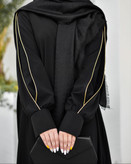 آستین این کار دوبل هست یه آستین ساده  و کامل پوشیده در زیر استفاده برای حجاب کامل و یه استین برش داره و کار شده برای زیبایی در رو استفاده شده یه مغزی دوزی حرفه ای داره که همراه با سجاف مغزی دوخته شده تا یه کار تمیز و مزونی داشته باشیم