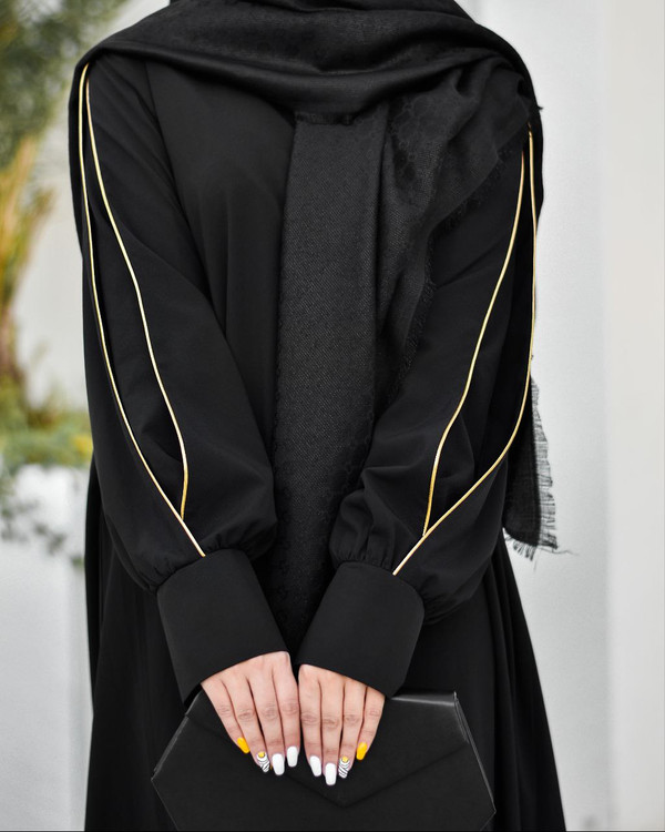 آستین این کار دوبل هست یه آستین ساده و کامل پوشیده در زیر استفاده برای حجاب کامل و یه استین برش داره و کار شده برای زیبایی در رو استفاده شده یه مغزی دوزی حرفه ای داره که همراه با سجاف مغزی دوخته شده تا یه کار تمیز و مزونی داشته باشیم