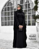 جزئیات : ۳۸ الی ۶۰/جنس کرپ ندا اماراتی/جواهردوزی شده/دور سینه حدود ۱۹۰ /قد 145/قداستین از کناریقه 70