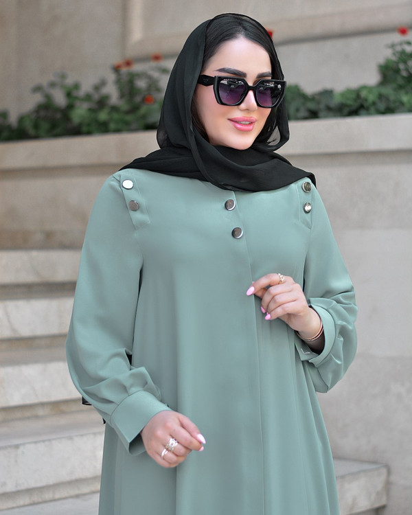 دورسینه ۱۱۶/قد ۱۴۰/ جلوی مانتو تمام دکمه مخفی دارد و کاربردی / دکمه های مچ کاربردی
