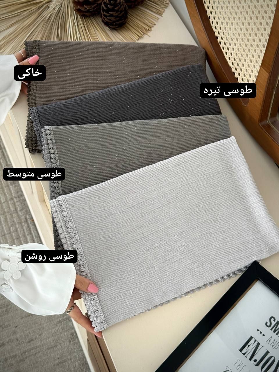مشخصات اصلیرنگبندی / ابی روشن / اجری / خاکی / زرشکی / زیتونی / سبز پاستیلی / سبززمردی / سورمه ای / شکلاتی / طوسی تیره / طوسی متوسط / طوسی روشن / قرمز / کرمی / مشکی / نسکافه ایمشخصات فرعیجزئیاتشال برشکا سکه ای وارداتی (شاین ) کیفیت بینظیر سایز: ( ۱۸۵×۷۵)