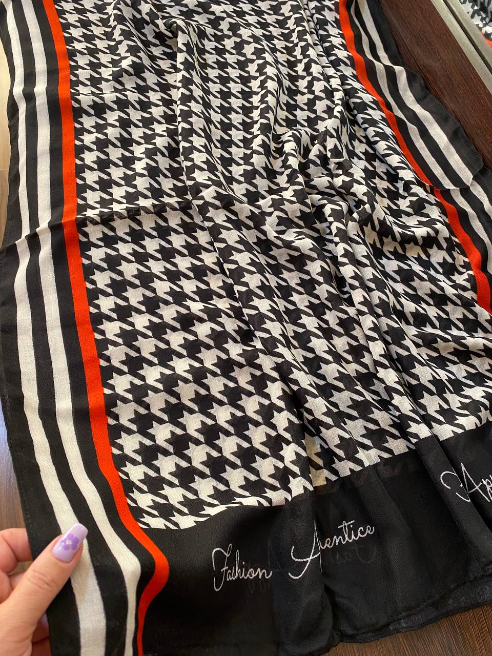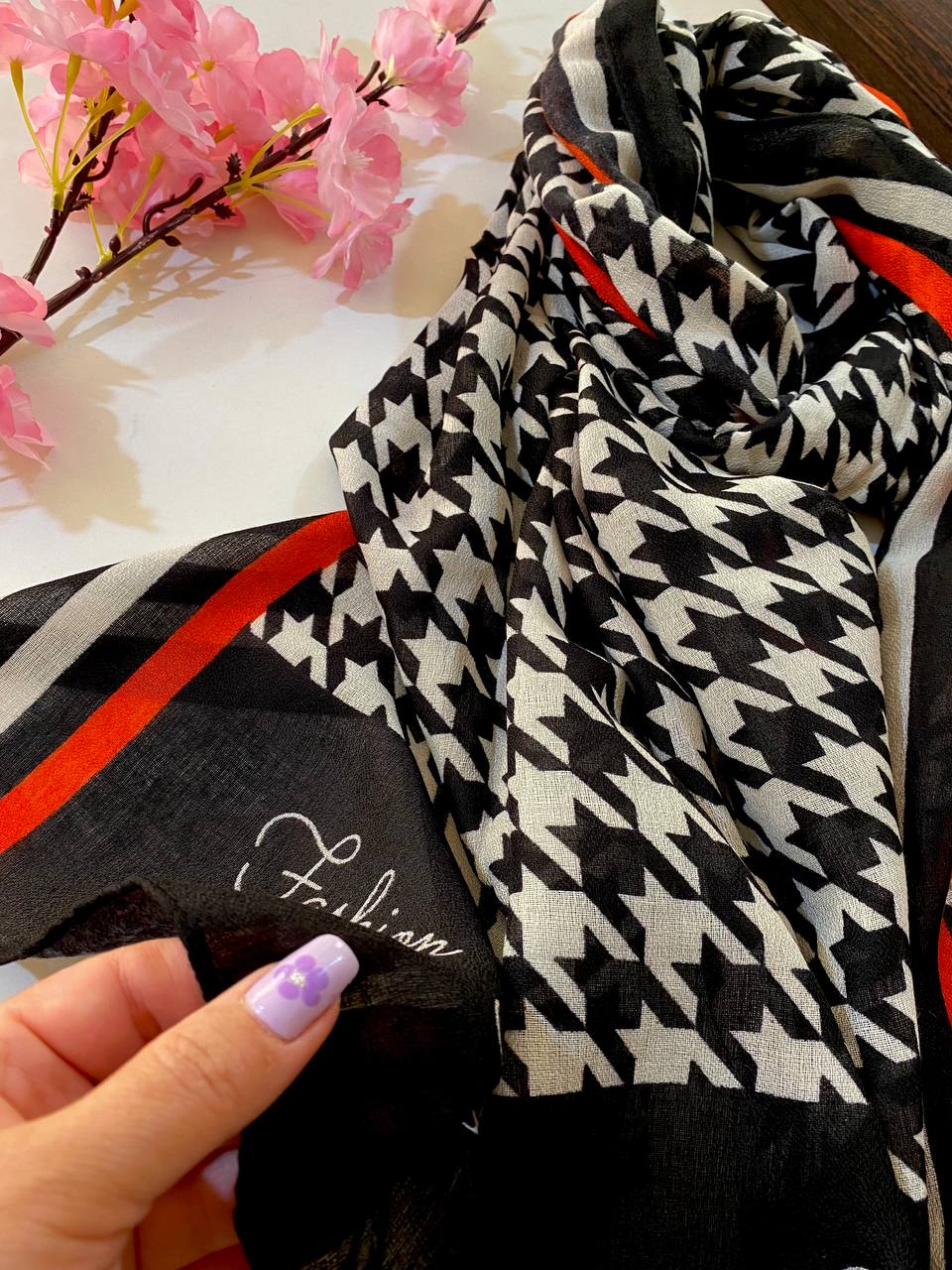 شال نخ پنبه سیااسکارف پاییزه وارداتی چاپ دورو تکرنگ سایز ۱۹۰در۷۵ رنگ محصول به خاطر تغییرات نور ممکن است یک یا دو درجه با رنگ واقعی کار متفاوت باشه