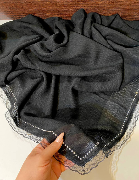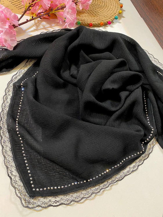 روسری نخ کراش درختی دور دانتل و نگین دار