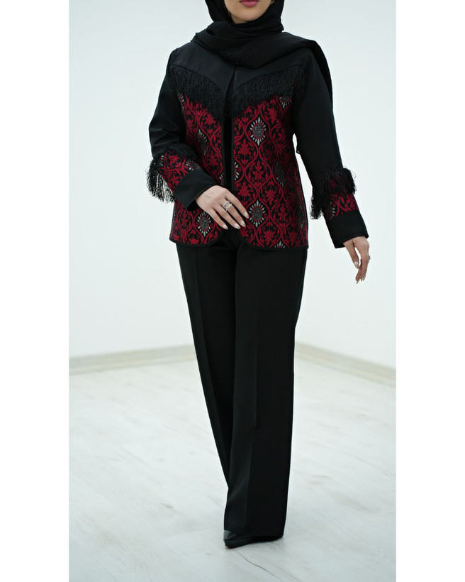 جزئیات : جنس : کرپ مازراتی و تافته لایی کوبی شده سایز ها : ۳۸تا۴۲, ۴۴تا۴۸ قد کت: حدود ۶۵ قد شلوار: ۱۰۵ دمپای شلوار: ۵۵ قد آستین: ۵۵ اندازههای سایز ۱ دور سینه: ۱۰۰ دور بازو: ۳۸ دور ران: ۶۰ اندازههای سایز ۲ دور سینه: ۱۰۸ دور بازو: ۴۰ دور ران: ۶۲