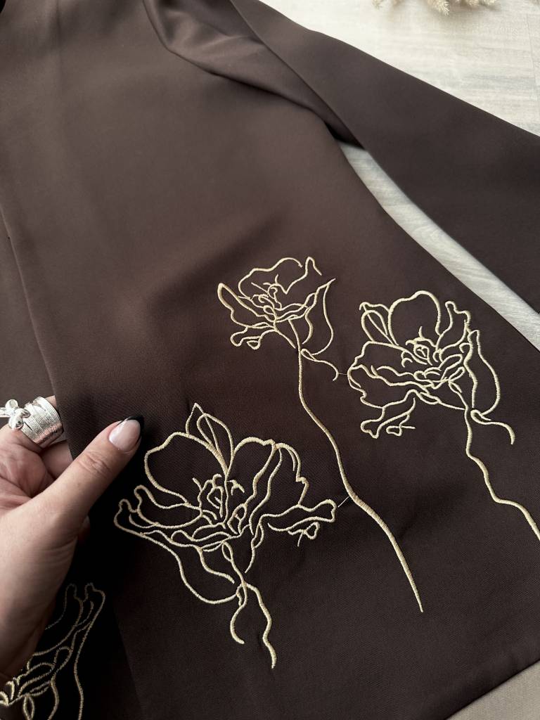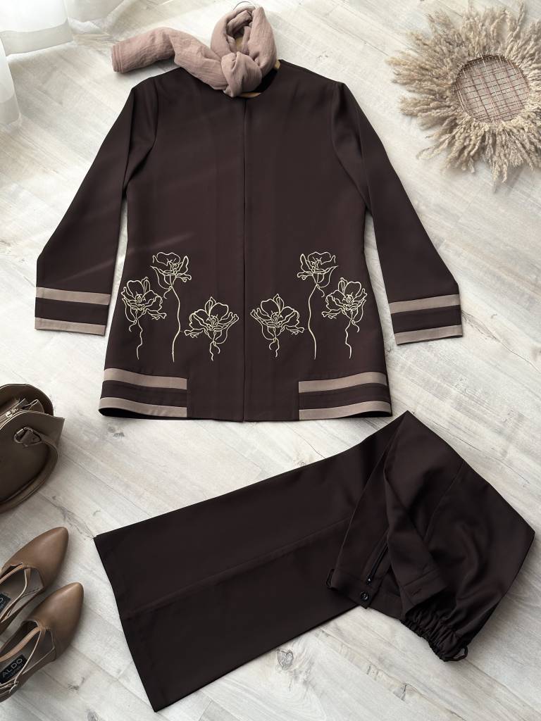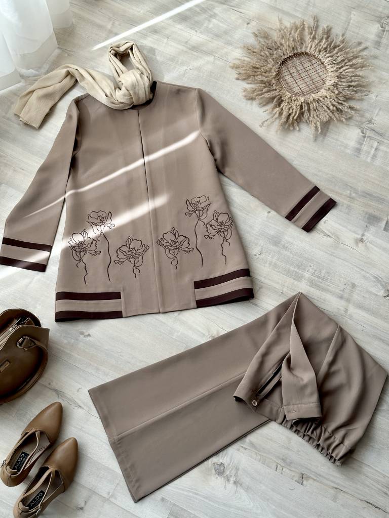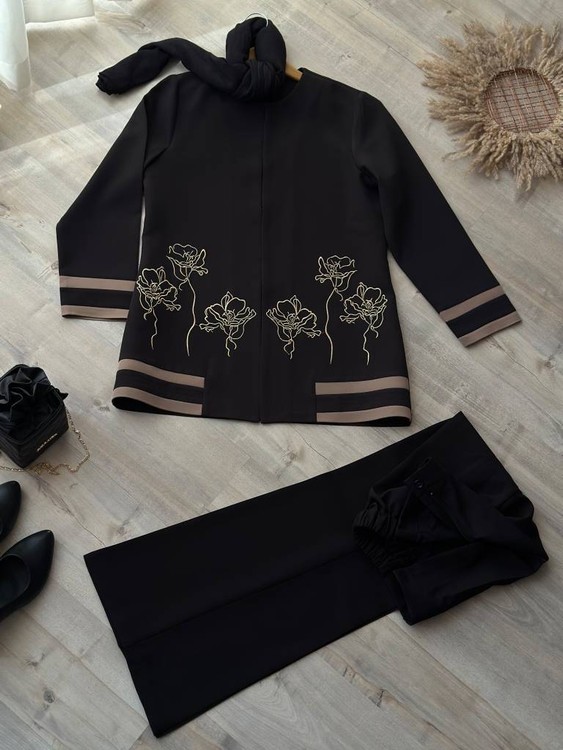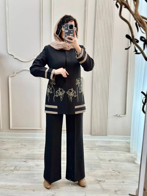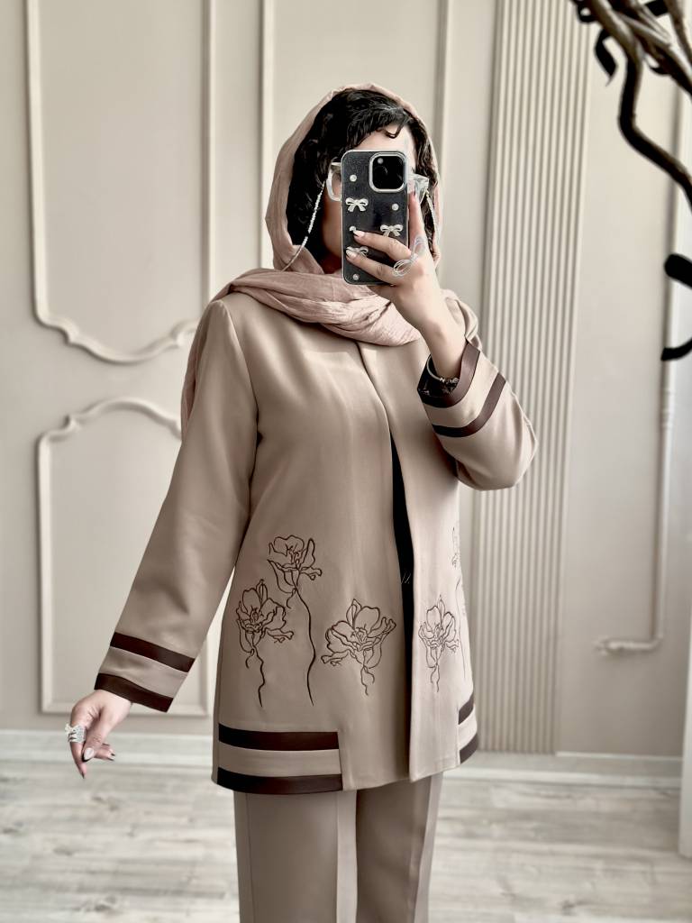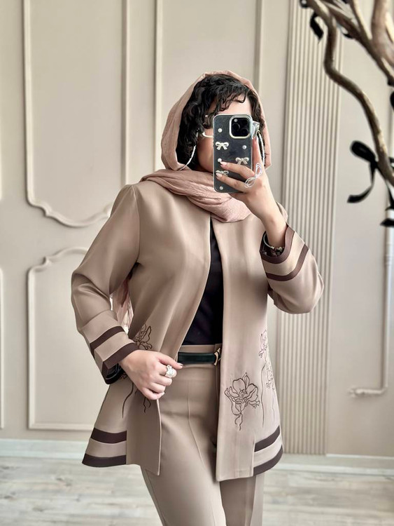 تیکه دوزی زیبا در قسمت پایین مانتو و لبه های آستین