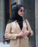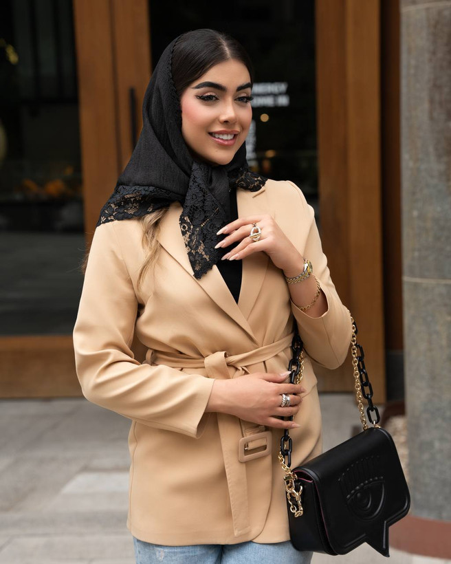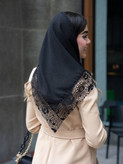مینی اسکارف سه گوش جنس لینن مدل لبه گیپور گل برجسته